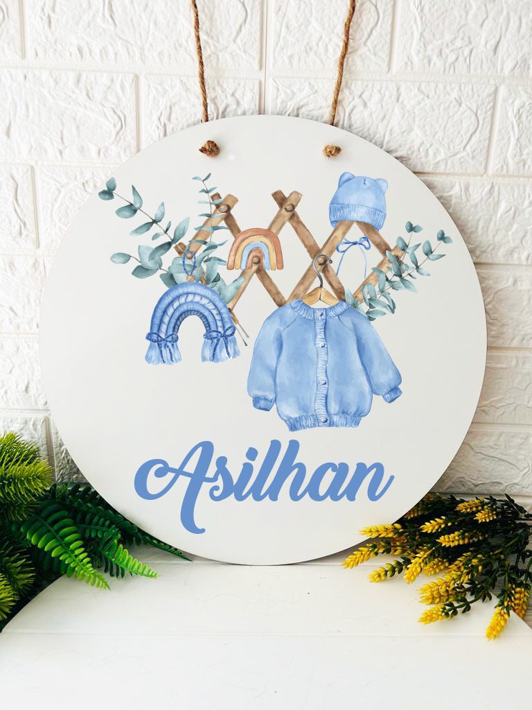 38 cm Ahşap Kapı Süsü- Bebek Kıyafeti