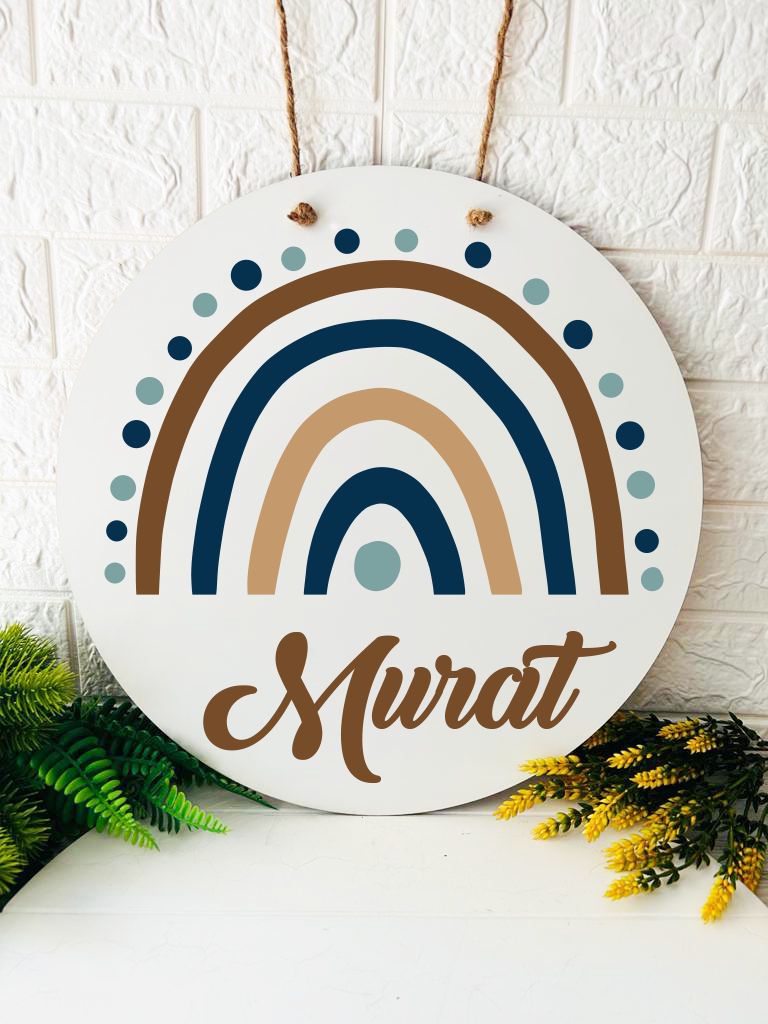 38 cm Ahşap Kapı Süsü-Bohem Gökkuşağı Temalı