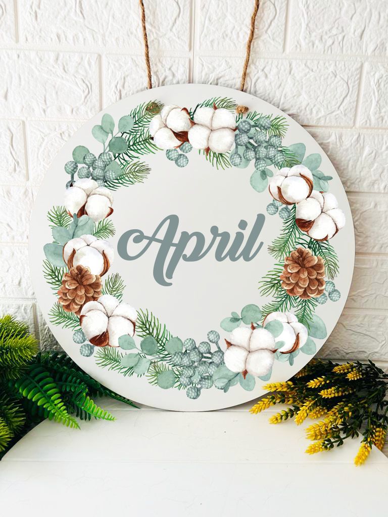 38 cm Ahşap Kapı Süsü- Çiçekli Pamuk Temalı