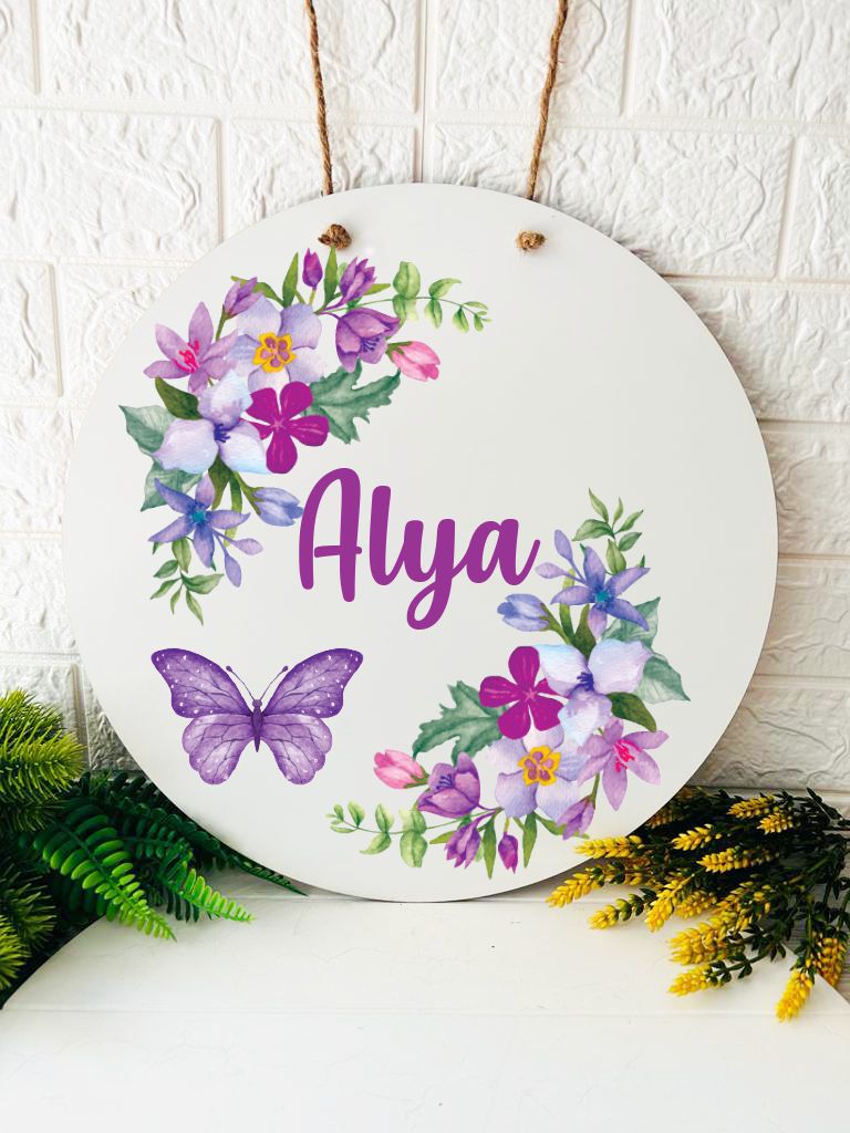 38 cm Ahşap Kapı Süsü- Kelebekl Temalı