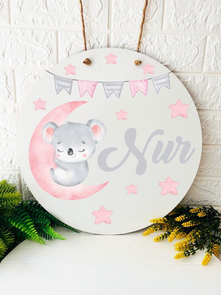 38 cm Ahşap Kapı Süsü-Koala Temalı