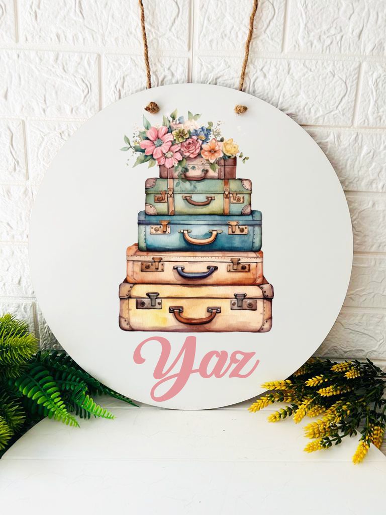 38 cm Ahşap Kapı Süsü-Seyahat Yaz Temalı