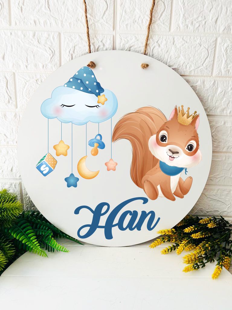 38 cm Ahşap Kapı Süsü- Sincap Temalı