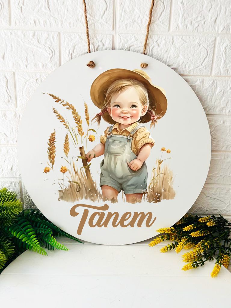 38 cm Ahşap Kapı Süsü- Şirin Çocuk