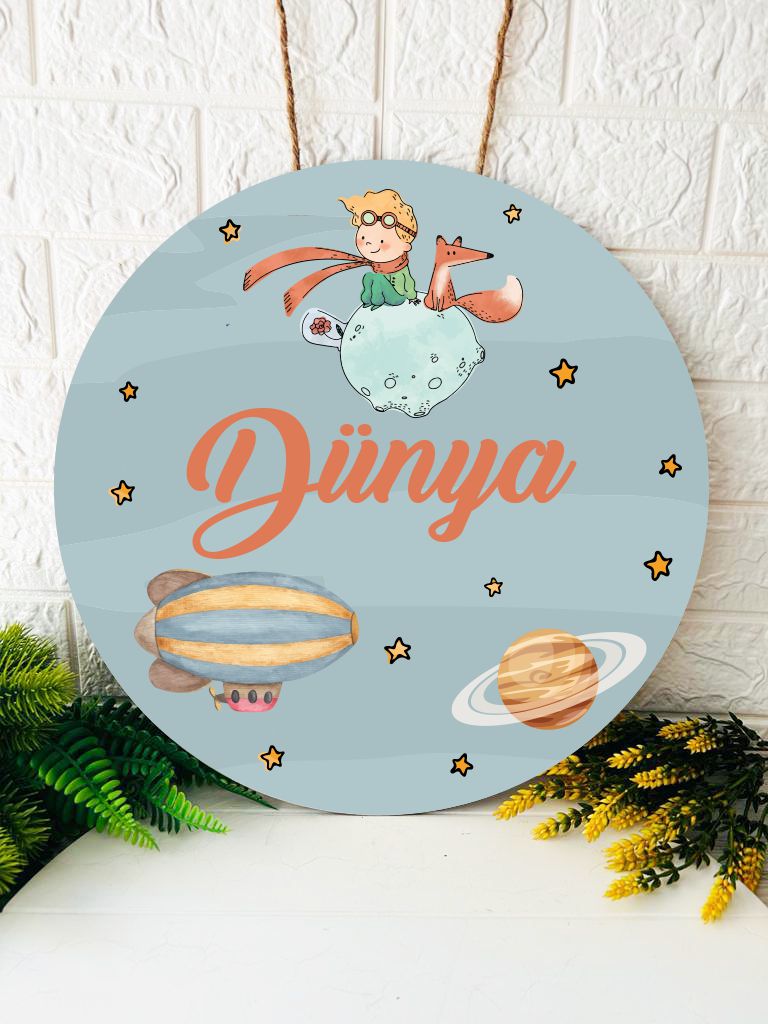 38 cm Ahşap Kapı Süsü- Uzay ve Küçük Pens
