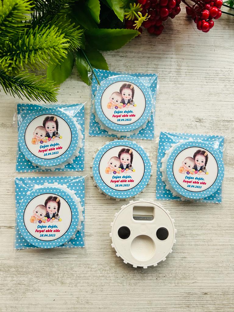 Çift fonksiyonlu dekoratif şişe kapak açacağı ürünlerimiz görünen ön kısım baskı alanı 7,5 cmdir