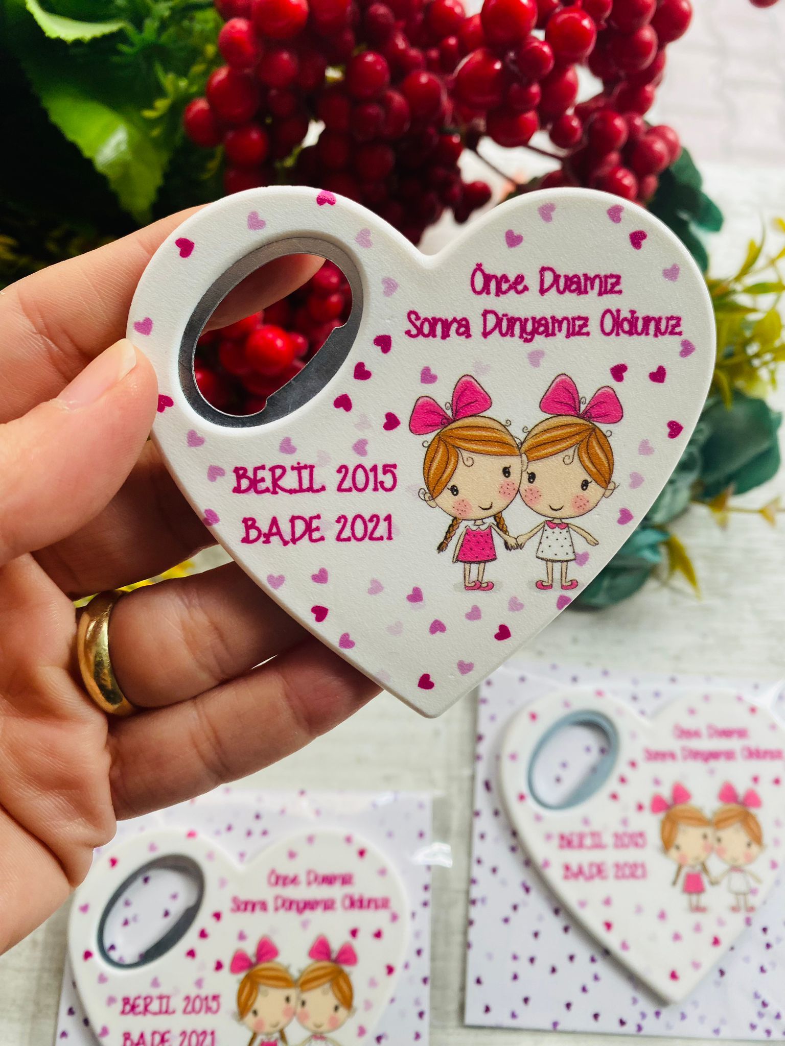 Abla Kardeş İkizler Temalı Kalp Magnet