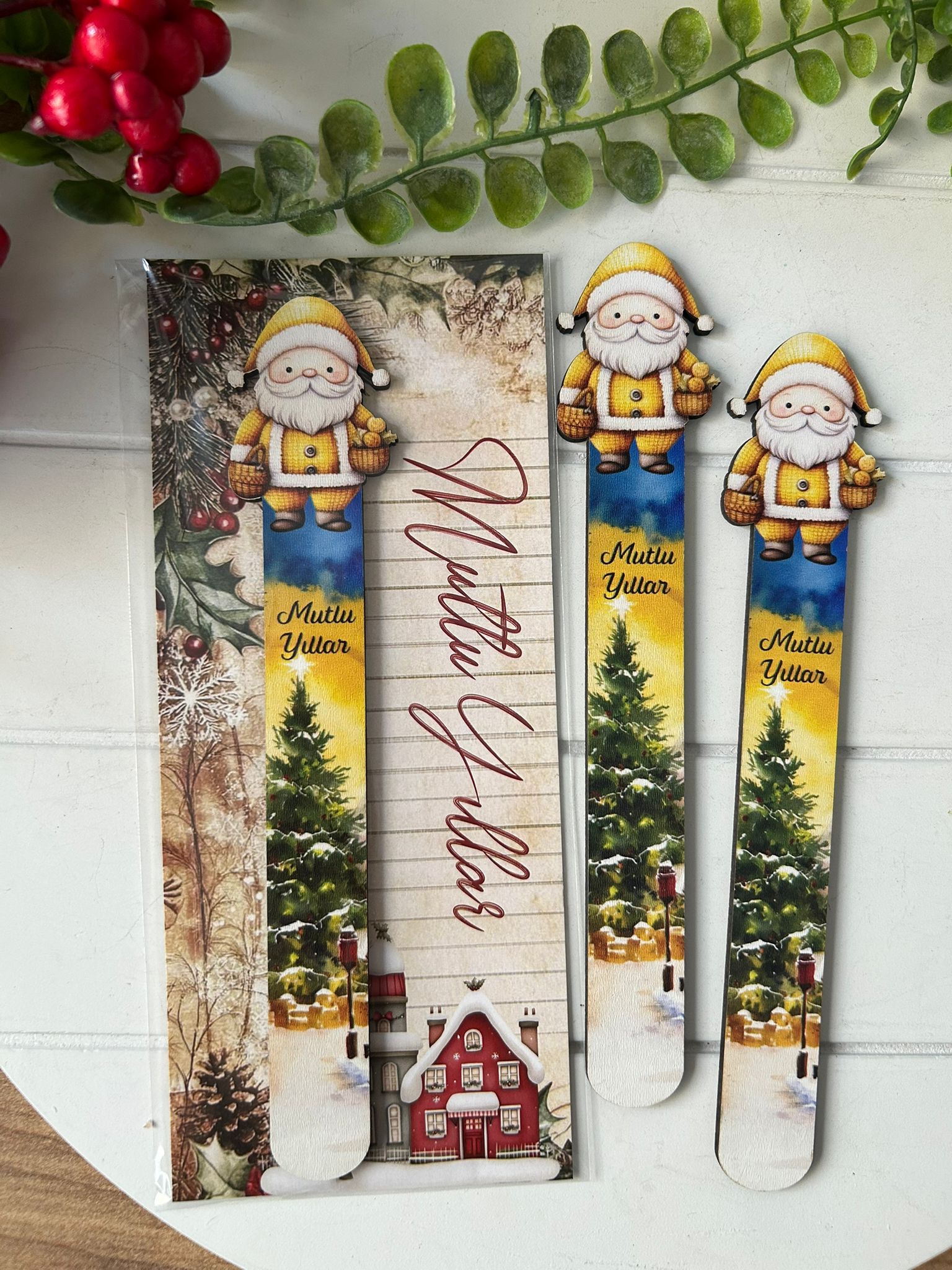 Ahşap Kitap Ayraçları -Noel Yeni Yıl Temalı