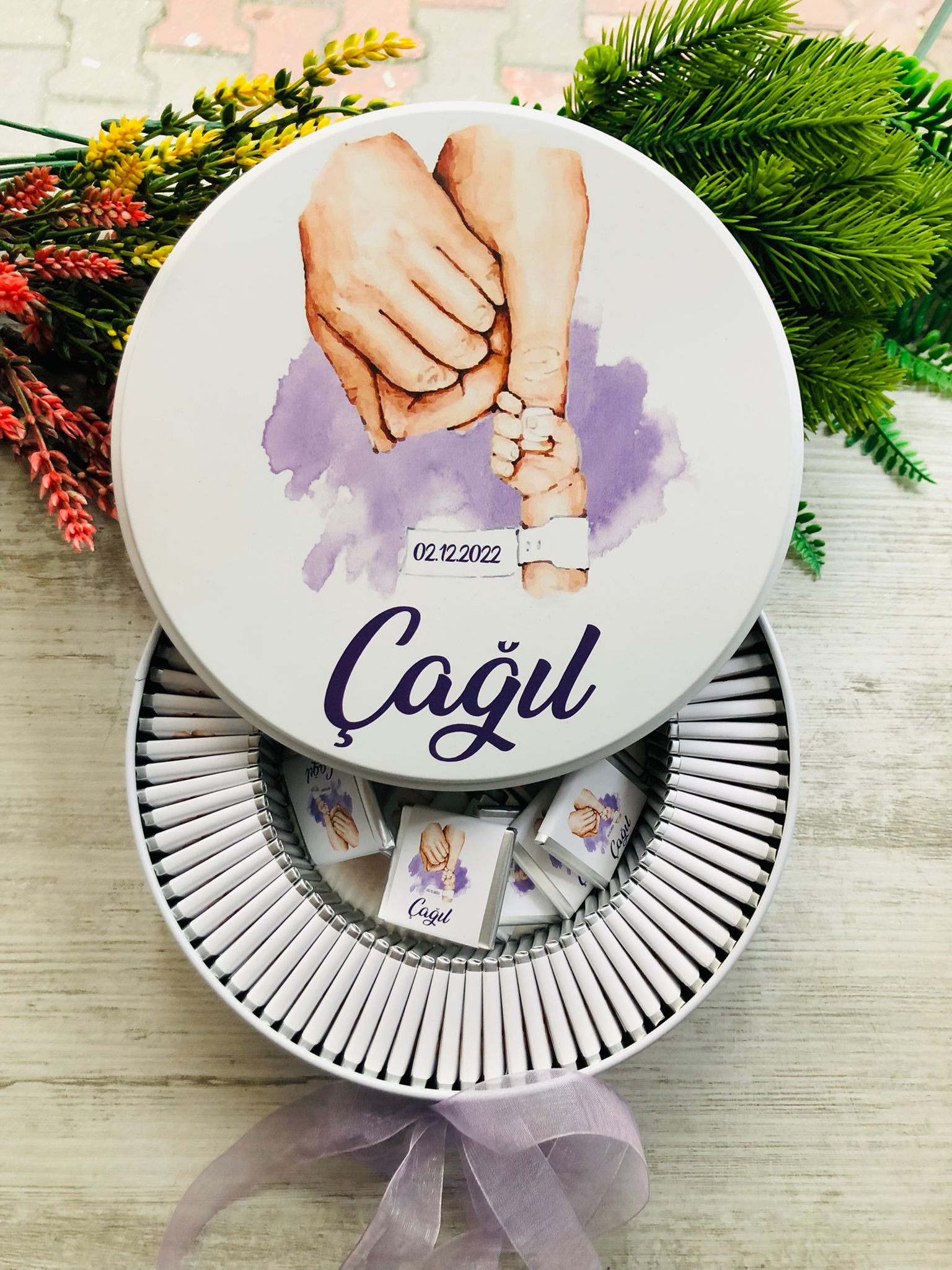 ANNE BABA BEBEK ELİ TEMALI ÇİKOLATA KUTUSU