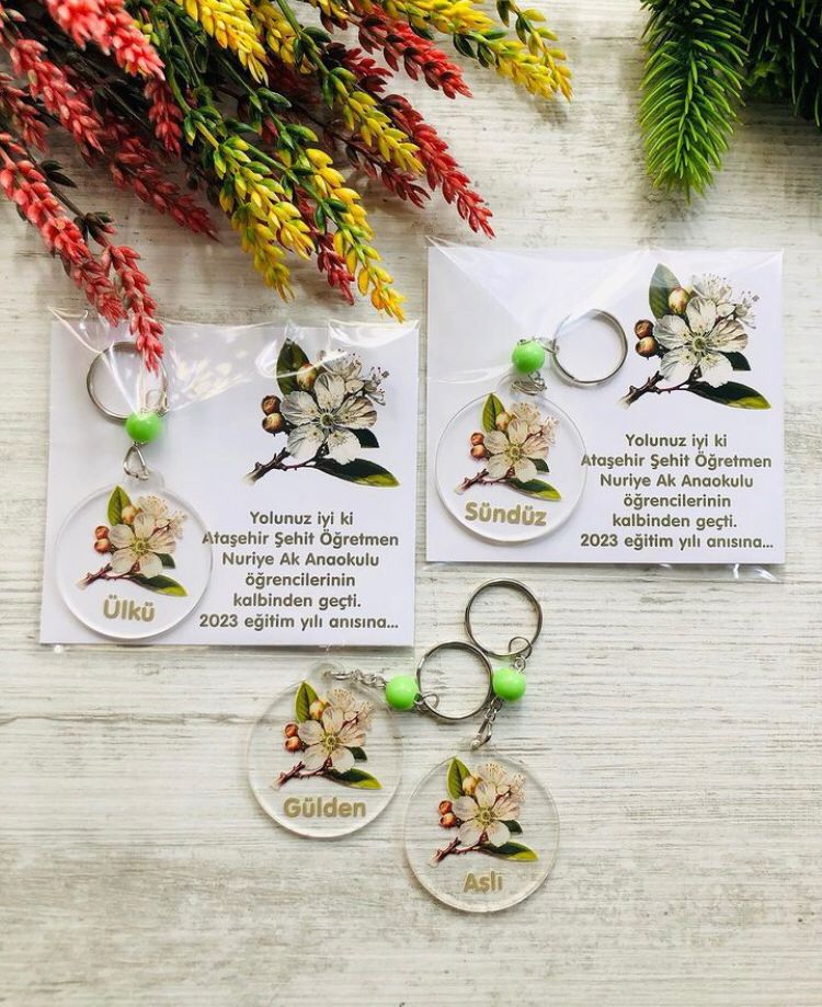 Çiçek Temalı Pleksi Anahtarlık