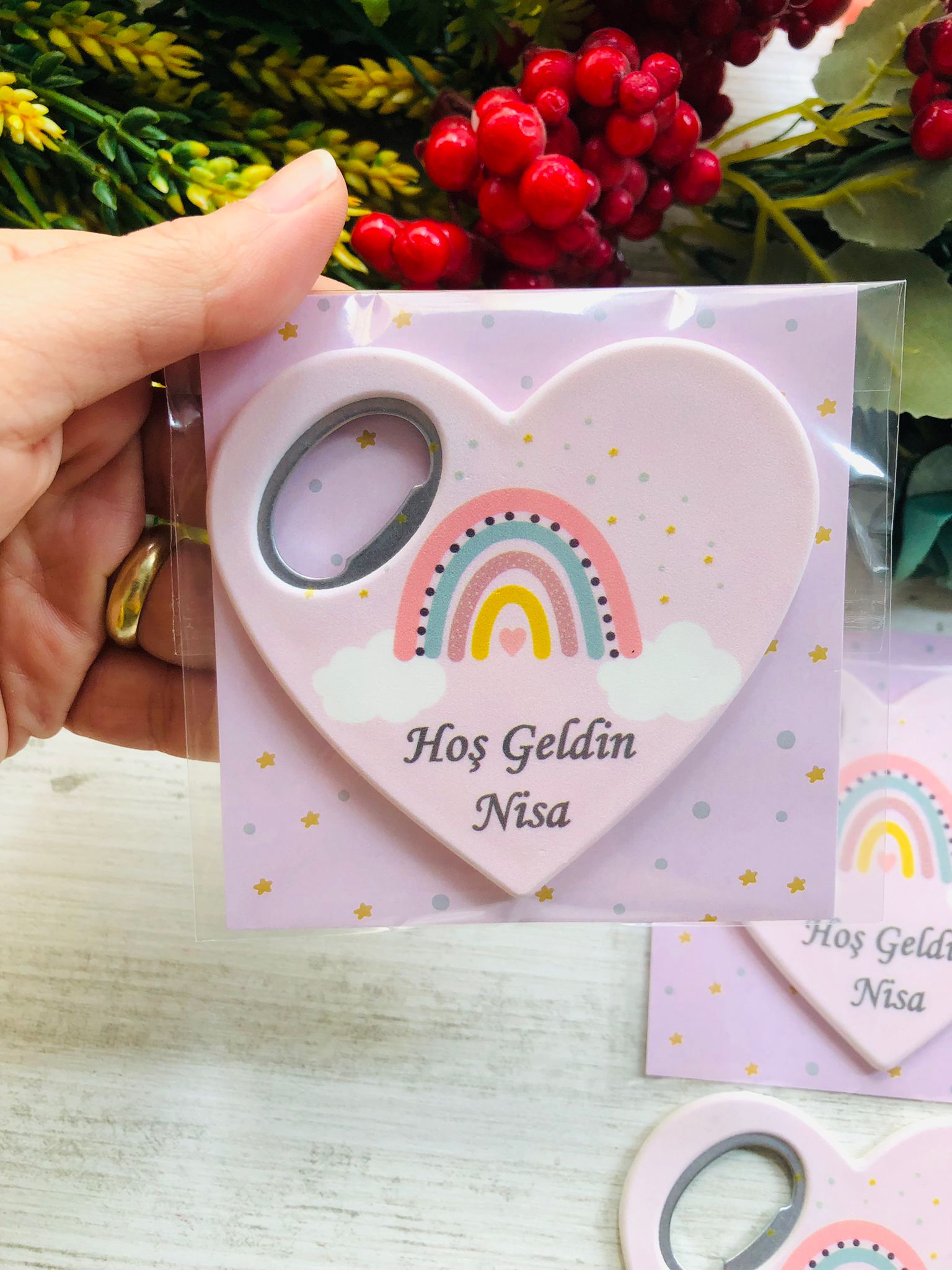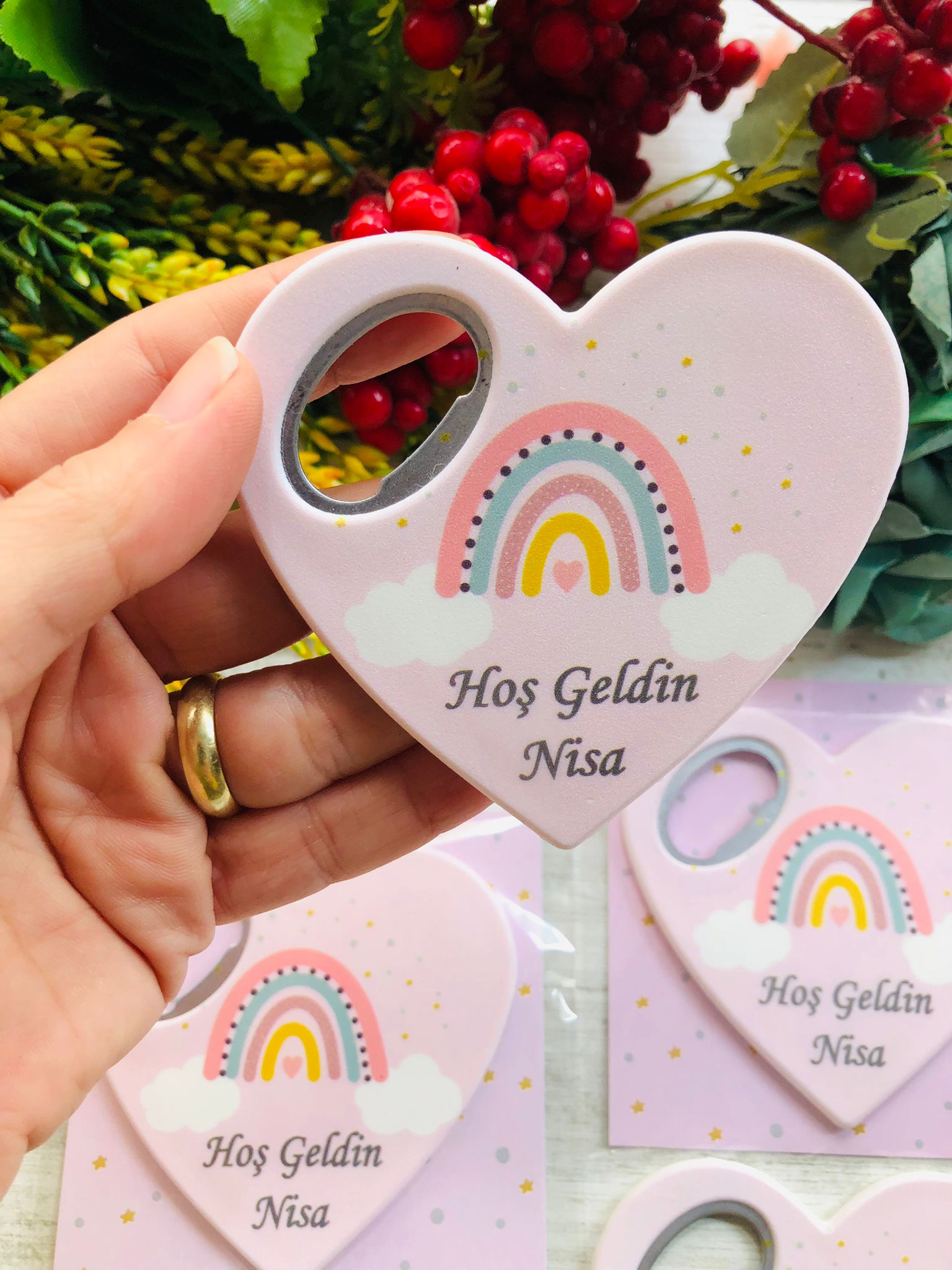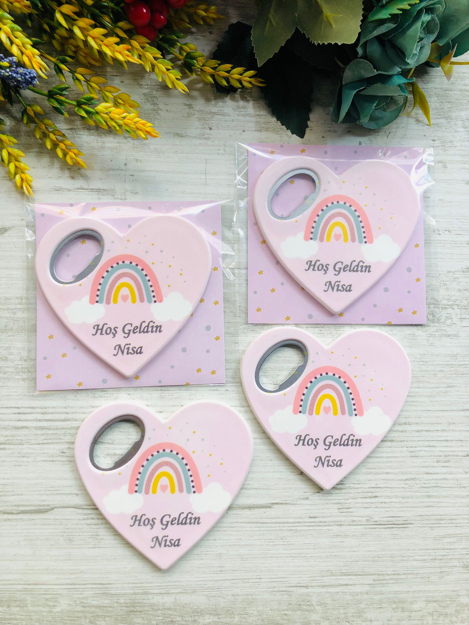 Pembe Bohem Temalı Kalp Magnet