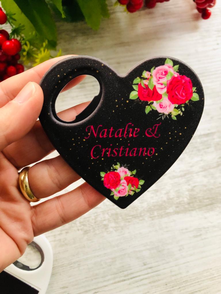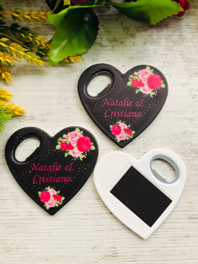 Siyah Pembe Çiçek Temalı Kalp Magnet