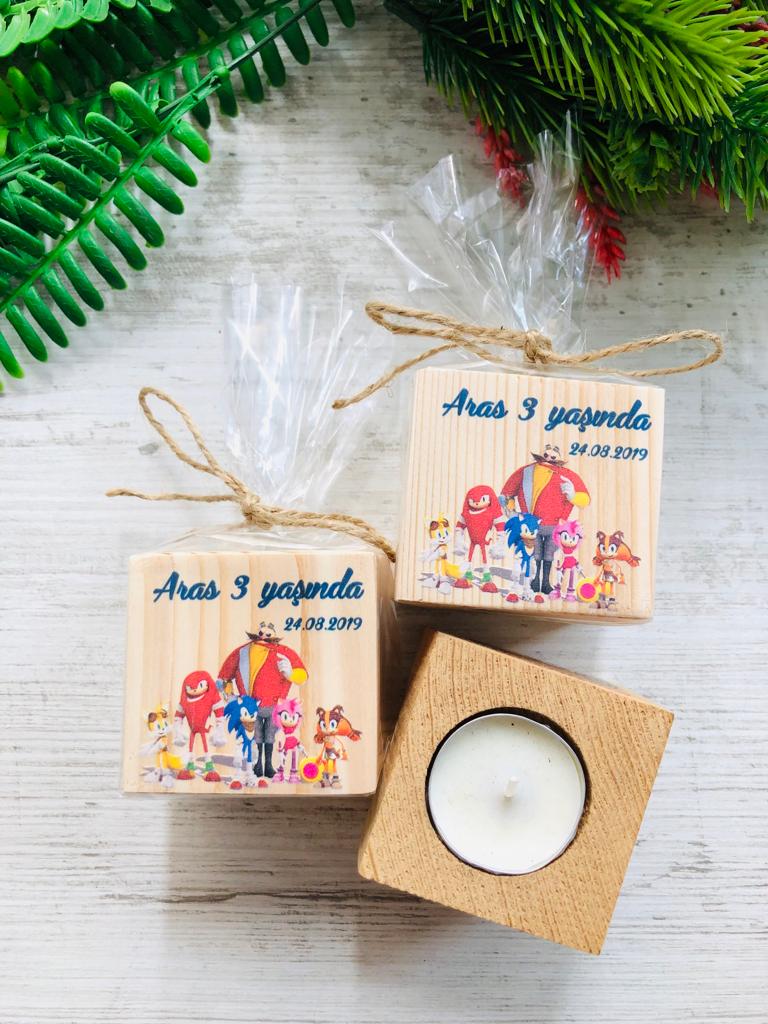 Sonic Temalı Ahşap Mumluk