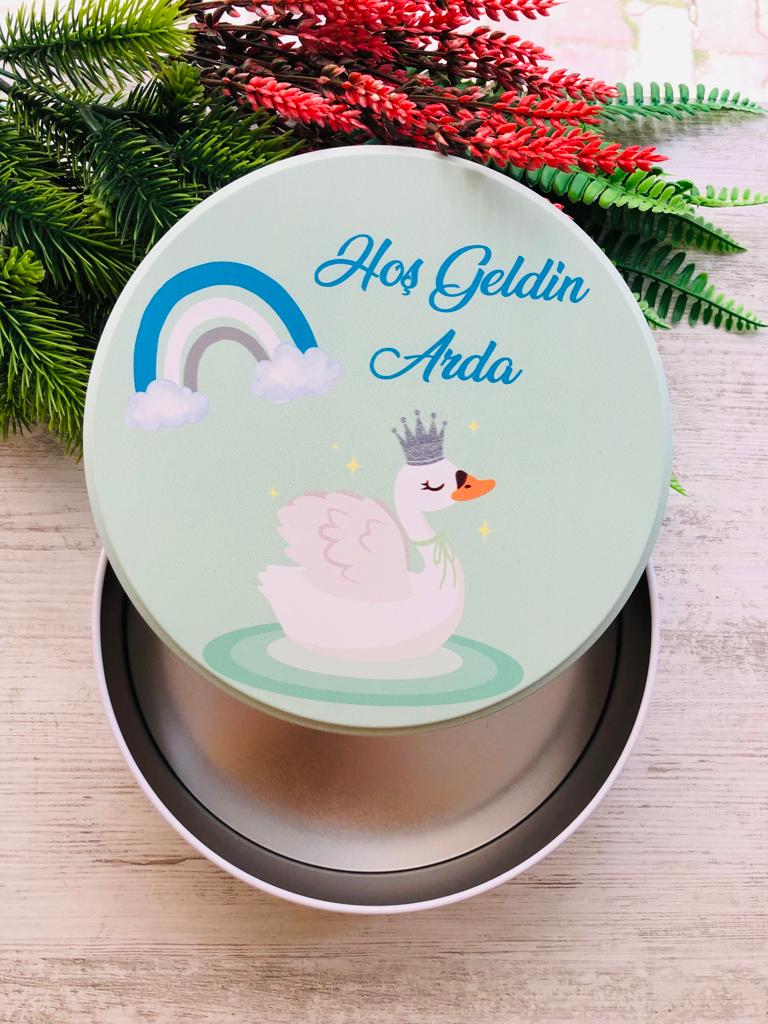 Uv Baskılı Boş Metal Kutu Kuğu Temalı